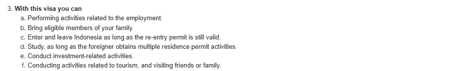 • 유효기간 동안 인도네시아 자유로운 입출국 허용